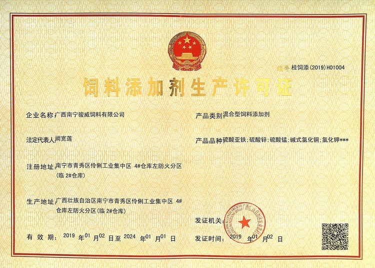 駿威—混合型飼料添加劑生產(chǎn)許可證