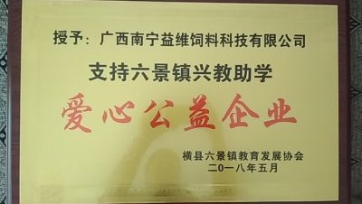授予:廣西南寧益維飼料科技有限公司愛心公益企業(yè)